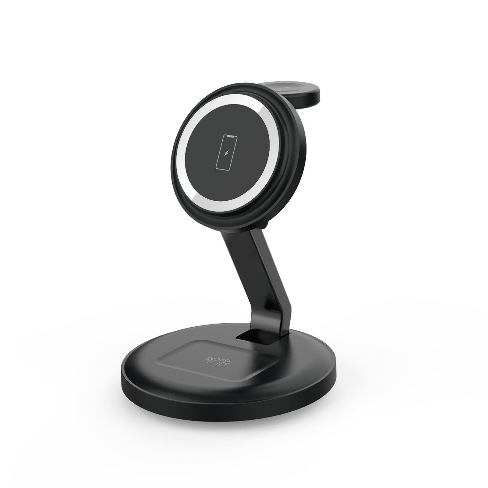 【Strong Magnetic Adsorption】3 in 1 foldable wireless charging station for Apple Built in with dedicated magnets, the wireless magsafe charger stand provide precise mag safe alignment for your electronic devices. Solid wireless magnetic connection ensures the convenience and security of charging and holding your devices in any orientation portrait or landscape.