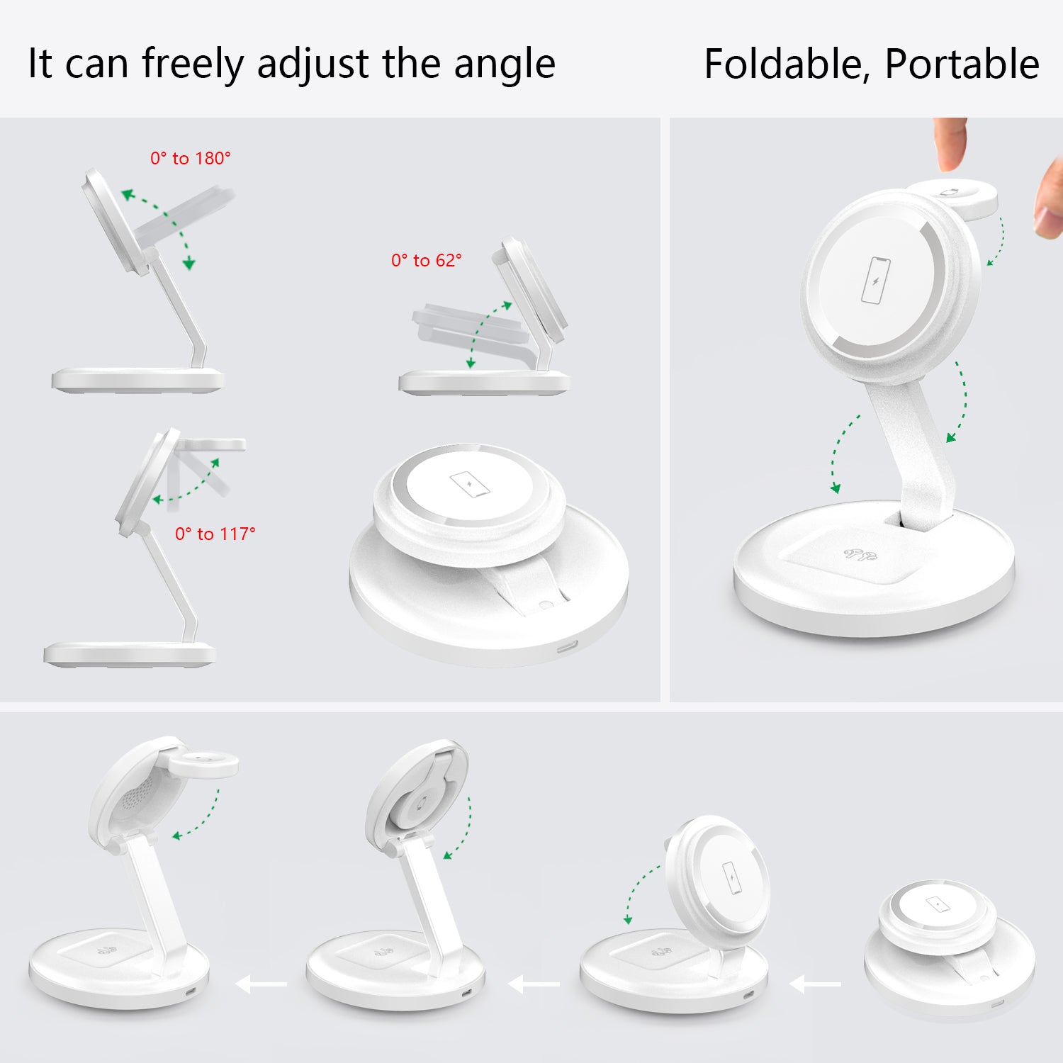 【Portable & Foldable Design】The mag safe travel charger stand can be folded into a wireless charging pad smoothly and stored in your bag or carrying luggage, making it an ideal companion for your travels or business trips. The portable travel wireless mag safe charger for multiple devices suitable for office, library, home, travel and other occasions. Compact size, well built, fast charging, space saving, exactly what you need!