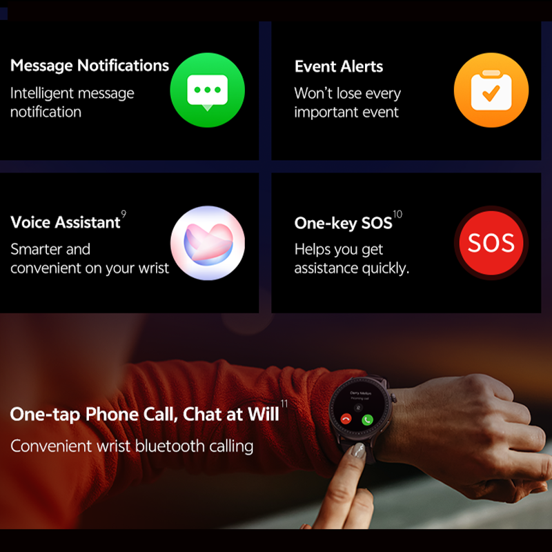 Advanced Health Monitoring System – Equipped with HX3695H sensors, the GTR3 supports 24-hour heart rate, blood oxygen, stress, and sleep tracking, as well as MAI Health Index analysis. It also includes women’s health management, emotional monitoring, and real-time health alerts to help you stay aware of your body’s condition every day.