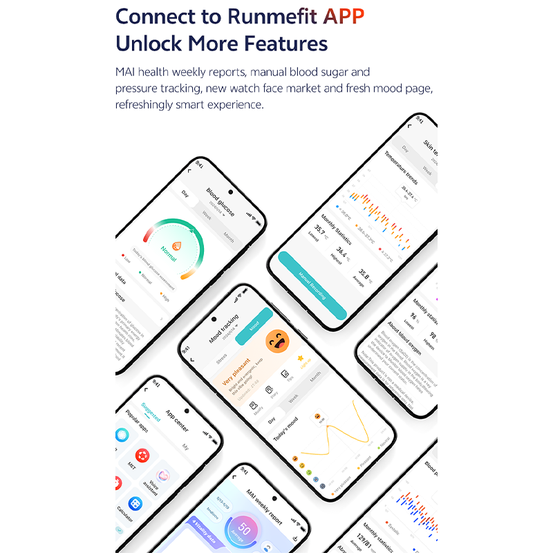 Smart Connectivity & Daily Assistance – Featuring Bluetooth 5.3 with a 10-meter stable range, the GTR3 allows Bluetooth calling, message notifications, and voice assistant access. With the Runmefit app, it syncs seamlessly to Android 7.0+ and iOS 12.0+ devices, supporting 27 app languages and integration with Google Fit and Apple Health. Additional tools like a calculator, flashlight, world clock, weather, music control, and camera remote make it a truly versatile companion.