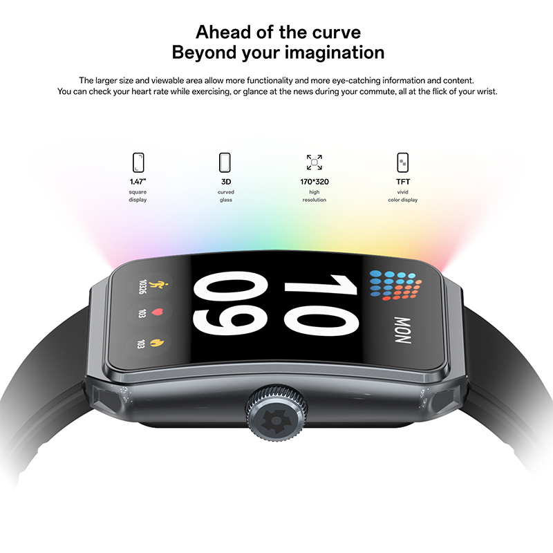 1.47-inch TFT full touch display with a 170×320 resolution delivers clear and practical visual performance. Supports multiple built-in watch faces plus an online watch face market, including DIY options with fast downloads.