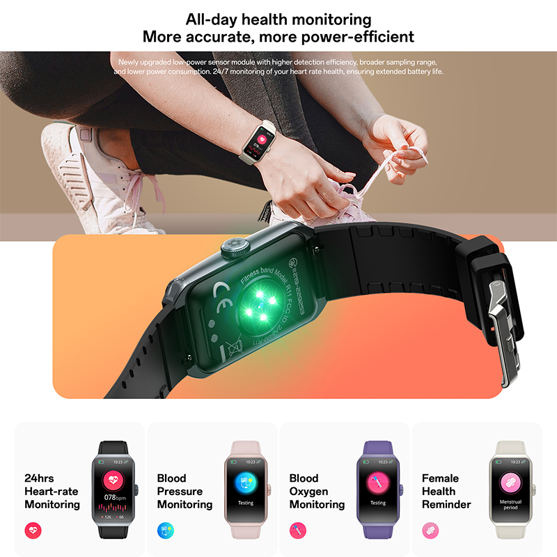 Supports 24-hour dynamic heart rate monitoring, blood oxygen measurement, blood pressure monitoring, and sleep tracking, helping users understand daily health and activity trends throughout the day and night.