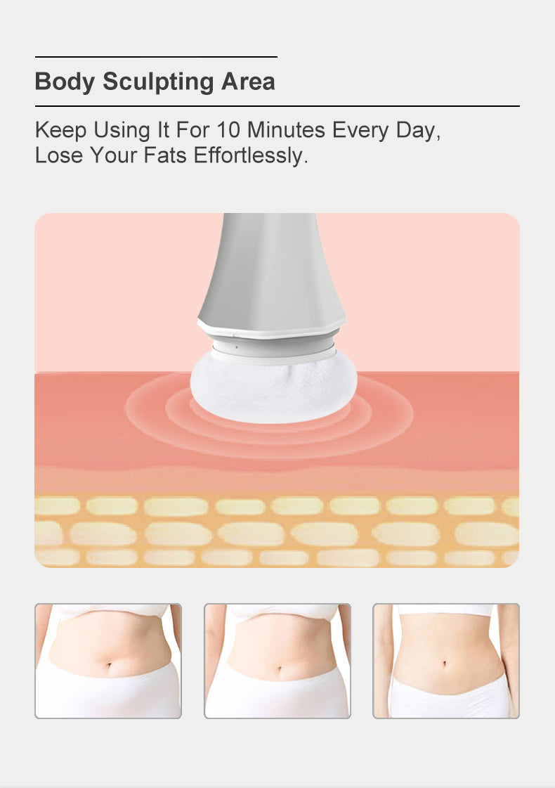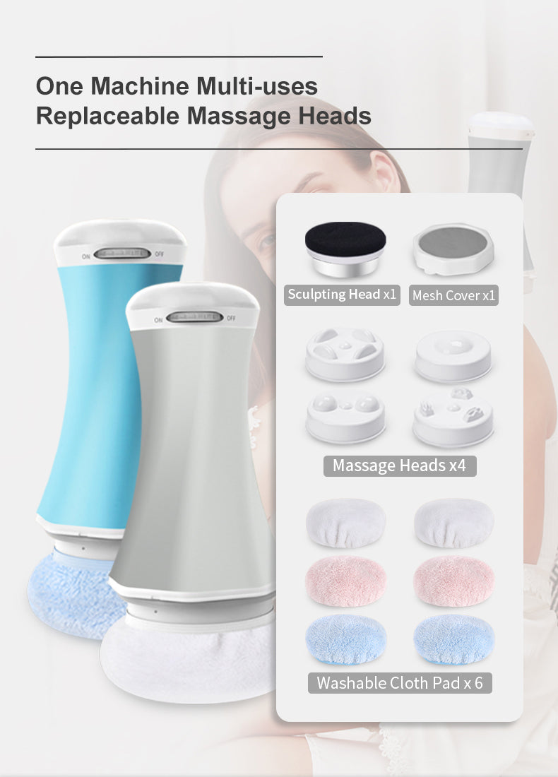 The body sculpting machine offers adjustable comfort, from gentle surface massage to high-speed massage. It includes multiple massage heads that can be used for various purposes, such as removing cellulite, accelerating blood circulation, and gentle massage of delicate skin areas. Its rechargeable feature ensures uninterrupted use for your comfort.