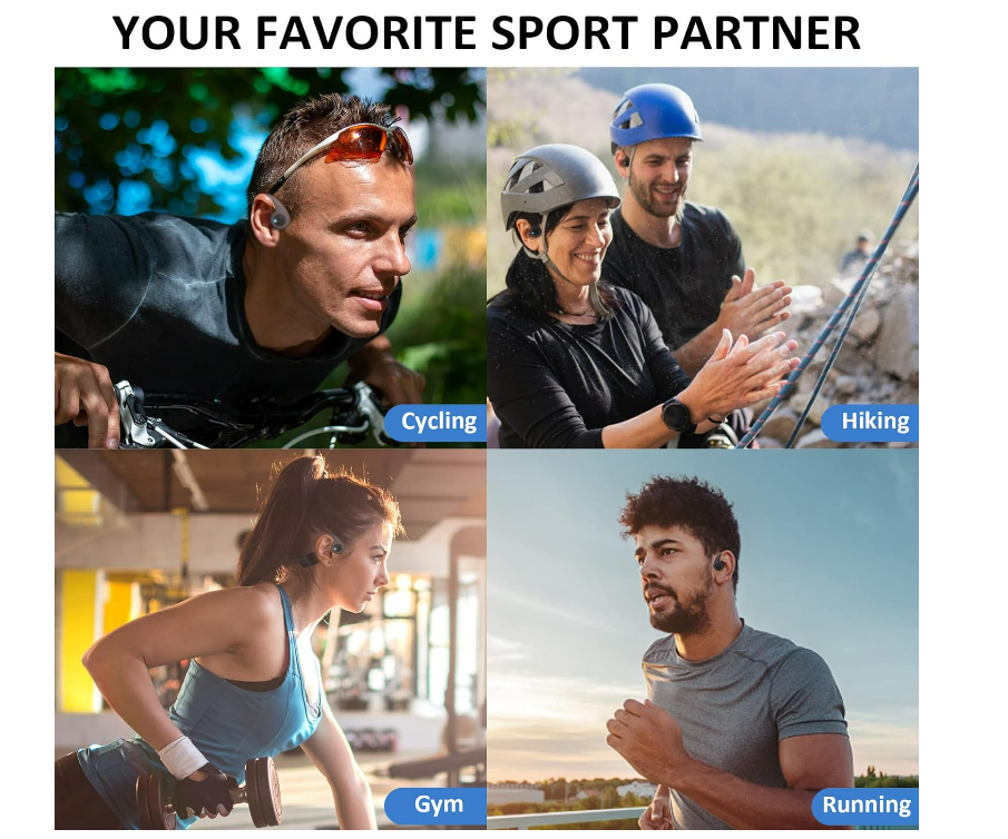 【Wireless Bone Conduction Headphones】Open ear bluetooth headphones feature a completely innovative openear design for allday listening without ear fatigue, the headphones can securely rest and firmly fit your ears without entering your ear canal, which will reduce stress after extended wear. and listening to music while still being able to perceive the sounds of the surrounding environment to realtime guard your movement