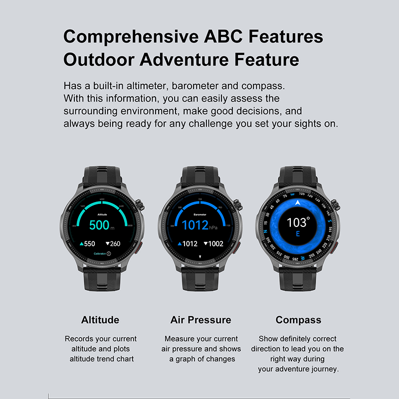 Track real-time heart rate, sleep, steps, blood pressure, weather, breathing training, and multi-sport modes. With a 3ATM water-resistant rating, the watch is suitable for hand washing, splashes, and daily wear. Built-in GPS, barometer (MSP880N), and compass provide enhanced outdoor functionality.