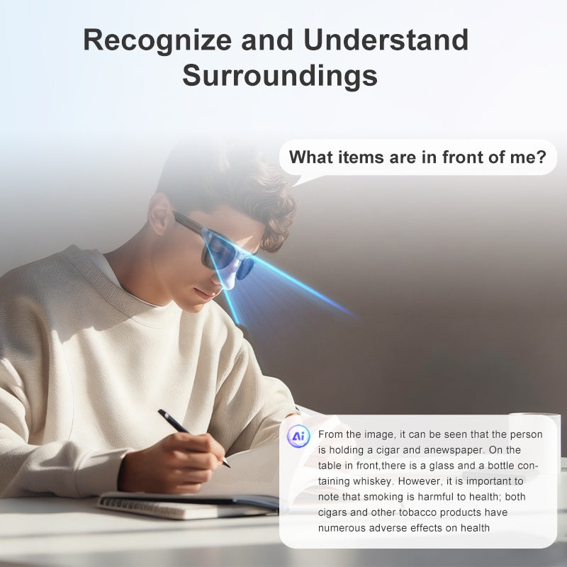 AI-Driven Assistant – Built-in AI supports voice wake-up (“Hey Cyan”), object recognition, smart dialogue, real-time translation and meeting transcription for hands-free notes and instant language help.