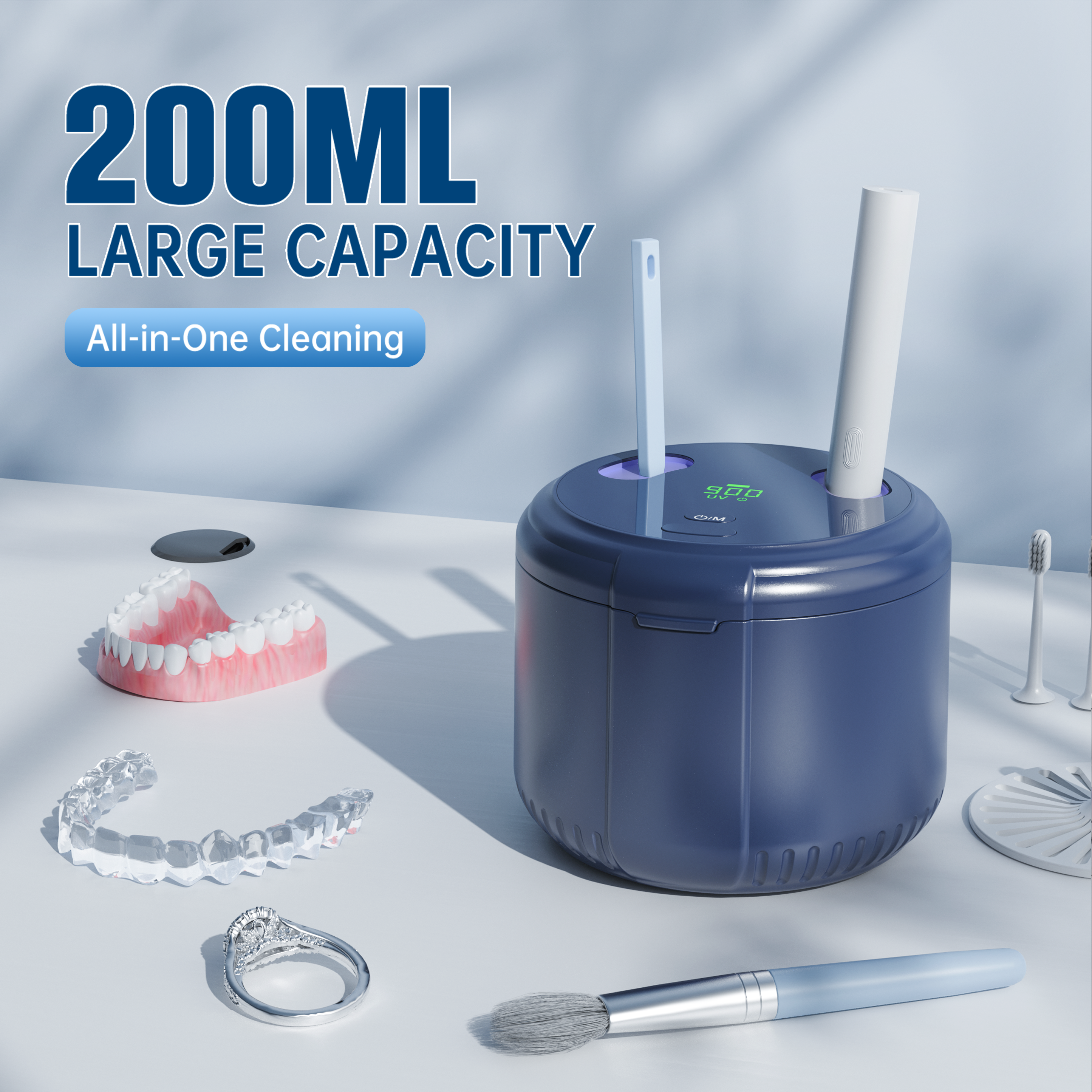 Equipped with 45kHz high-frequency ultrasonic vibration, this cleaner generates strong microbubbles that reach every corner, effectively removing dirt, bacteria, and odors from dentures, braces, toothbrushes, rings, and other daily items for a thorough clean.