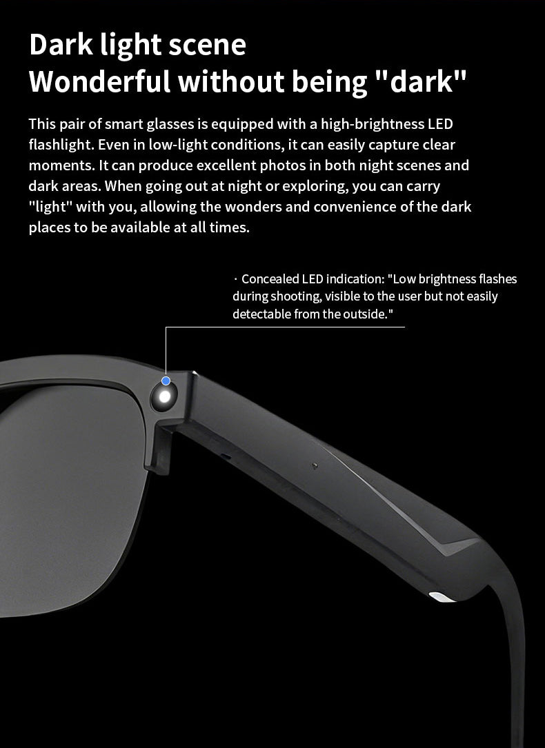 Featuring a discreet built-in LED, the glasses capture clear images even in night or low-light environments, without drawing attention.