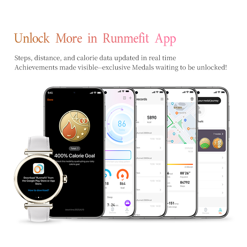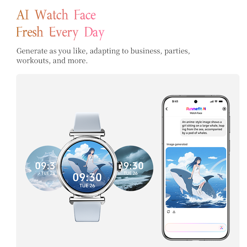 AI-Powered Watch Faces & App Integration – Customize your GTR4 with AI-generated dynamic watch faces via the Runmefit App. Supports over 100 sports modes, full health monitoring, and synchronization with Google Fit and Apple Health. The app also provides a dedicated watch face marketplace for personalized style and functionality.