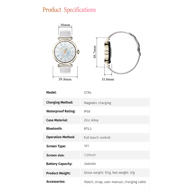 Vibrant TFT Display & Premium Design – The GTR4 features a 1.27-inch TFT full-touch display with 360×360 resolution, delivering crisp visuals for notifications, workouts, and health tracking.