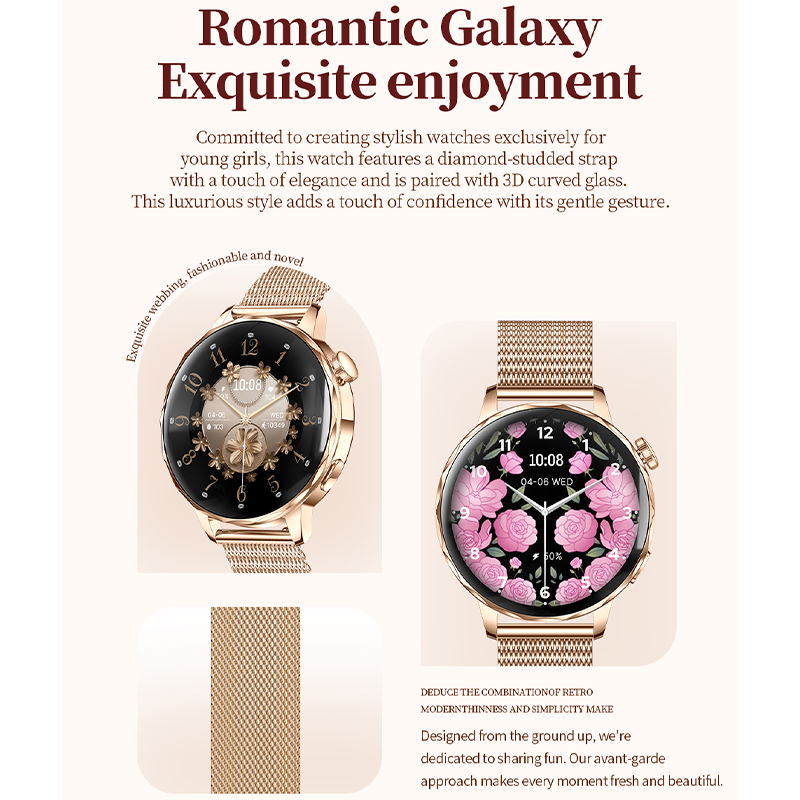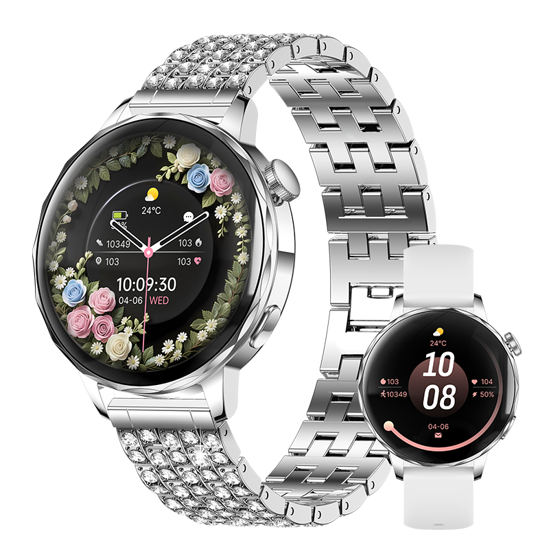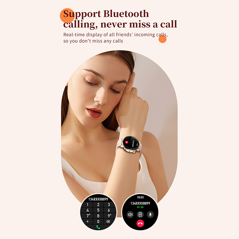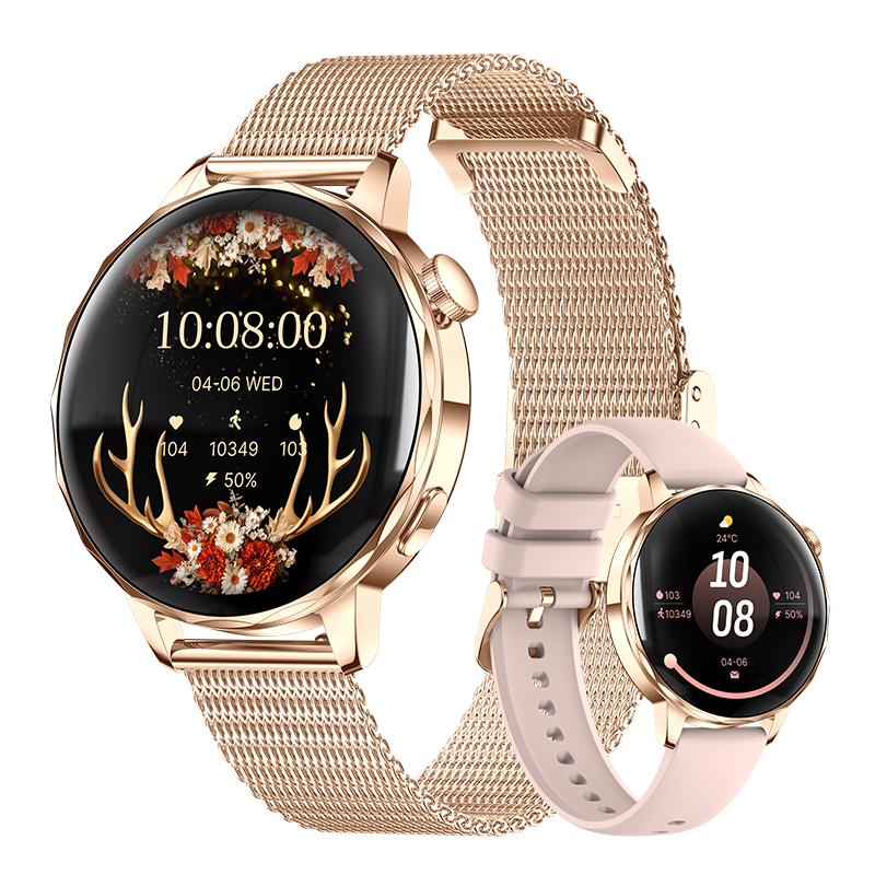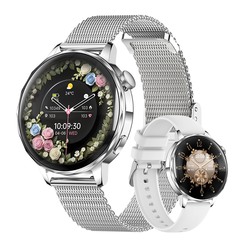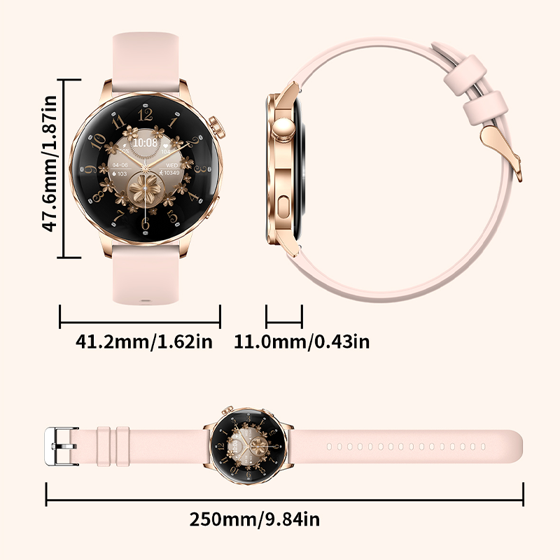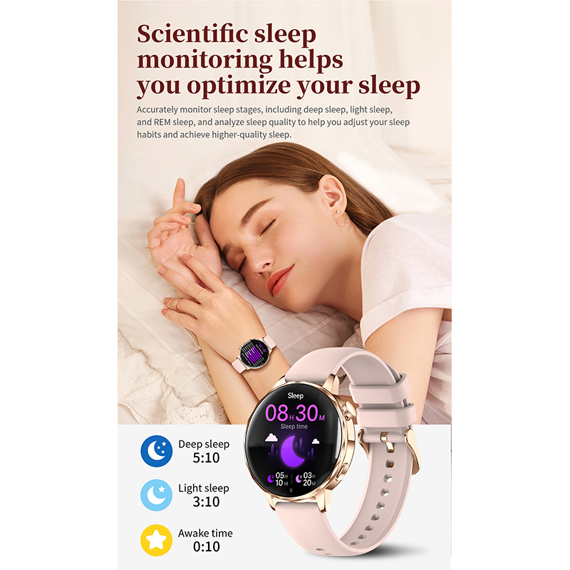 Powered by the HX3918 heart-rate sensor, STK8321 accelerometer and red/IR SpO2 system, it supports 24-hour heart rate monitoring, sleep tracking, stress reminders, women’s health management, hydration alerts, sedentary reminders and manual blood oxygen measurement. Additional tools such as flashlight, alarm, timer, remote camera, sidebar and customizable widgets make everyday use easier.