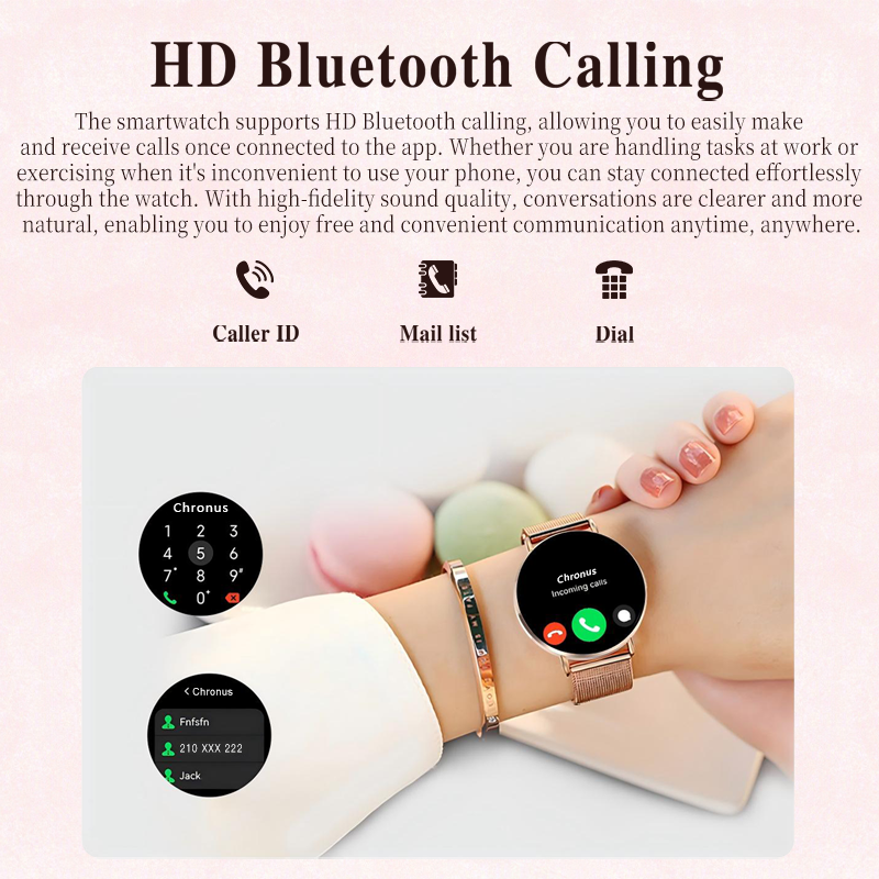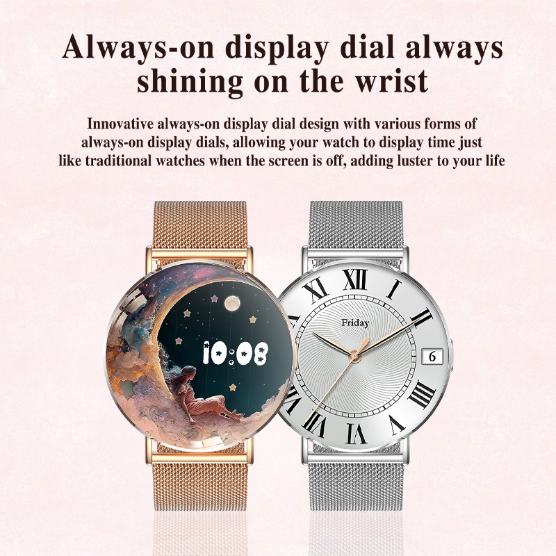 【Exploring the ultimate of luxury and comfort】As a ladies' smartwatch, it is the only watch with an all metal body, ensuring durability and surprising lightness. You hardly notice it on your wrist. Its diameter is 41 millimeters (16 inches).