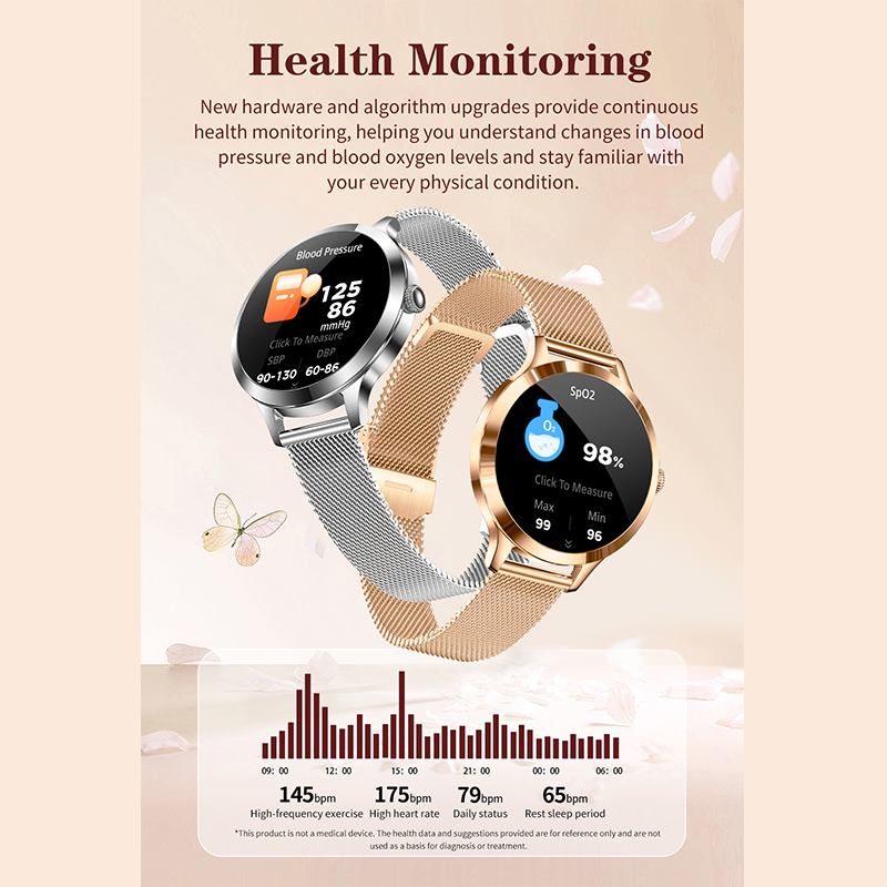 Powered by the JL7013A6 chipset, dual Bluetooth BLE 5.3 and advanced sensors including the VC30F heart-rate module and LIS2DOCTR G-sensor, this smartwatch provides reliable health and activity tracking. Daily functions include step counting, sleep monitoring, 24-hour heart rate tracking, blood pressure, SpO2, weather, camera control, music control, stopwatch, timer, alarms, breathing training, theater mode, QR code and message alerts.