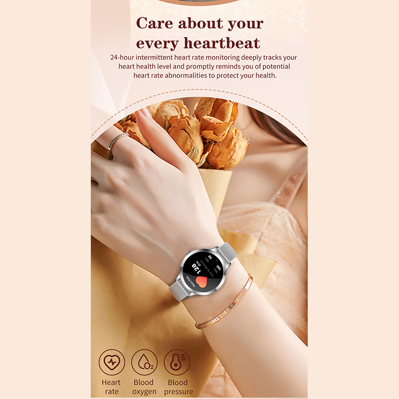 The T91 Smartwatch features a compact 35mm dial size housed in a full-metal alloy body, offering a luxurious and lightweight design suitable for women. It includes a 1.04-inch AMOLED display with a crisp 340×340 resolution, delivering rich colors and excellent visibility in daily use. The stainless-steel back cover and magnetic charging ensure durability and convenience.